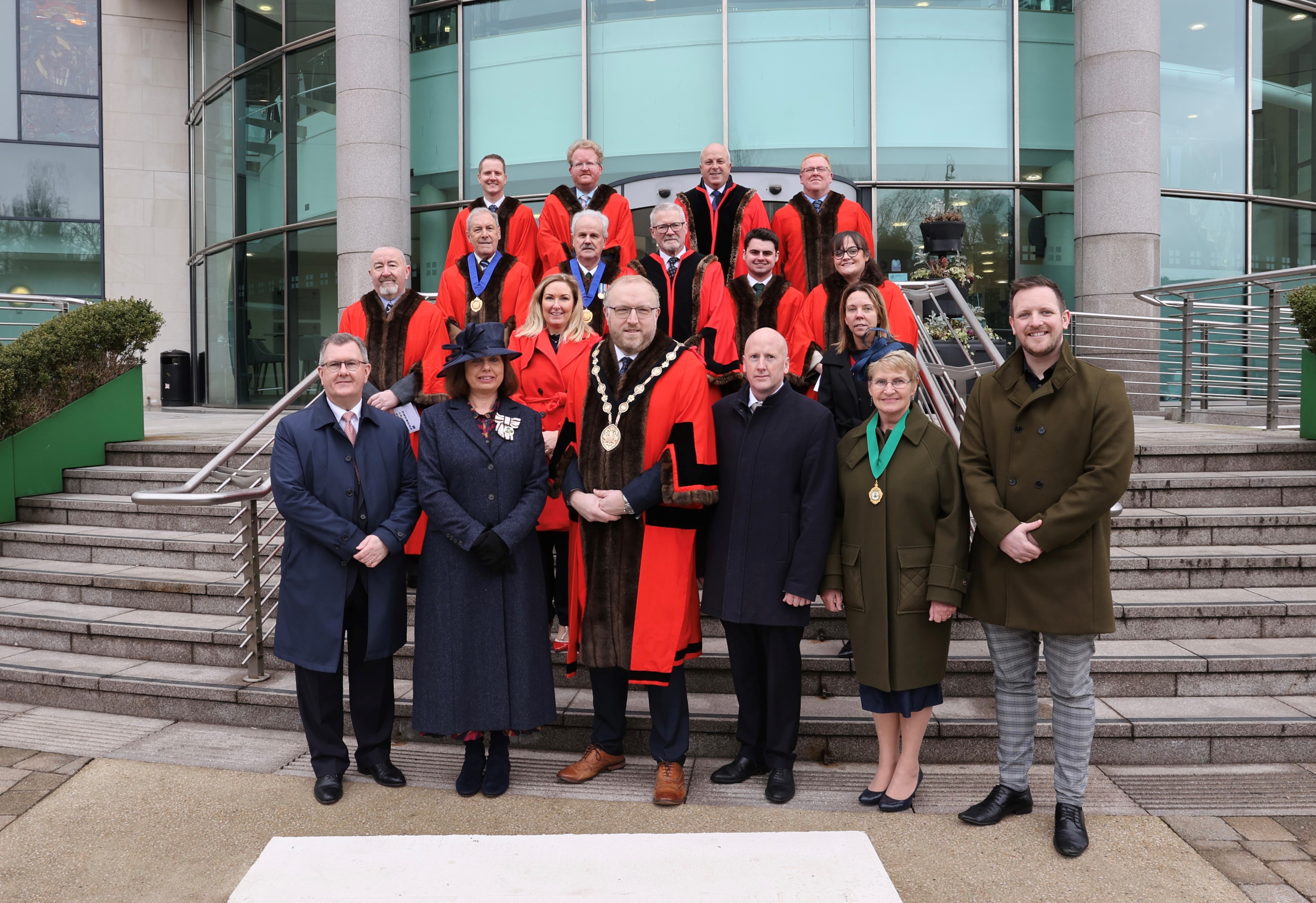 The Mayor Councillor Andrew Gowan was joined at the event by Sir Jeffrey Donaldson, Miranda Gordon, Vice Lord-Lieutenant of County Antrim, Donal Rogan Director of Regeneration & Growth, Patricia Perry, High Sheriff of Co Antrim and the Mayors Chaplain Mr Danny Roberts.